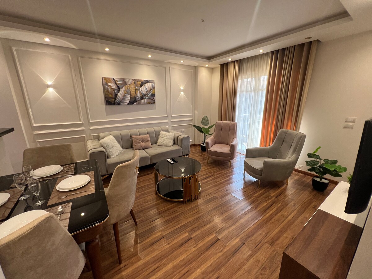 This spacious apartment is fully furnished and equipped with everything you need for a comfortable stay. Relax and watch your favorite movies and TV shows on the sound system with access to Netflix, beIN Sports, Shahid, Watch it, and Starzplay. Located in a central location, close to all the major attractions. Just a short walk for bus station , the shops, and the restaurants. Whether you're traveling for business or pleasure, this modern, stylish apartment is the perfect place to stay.