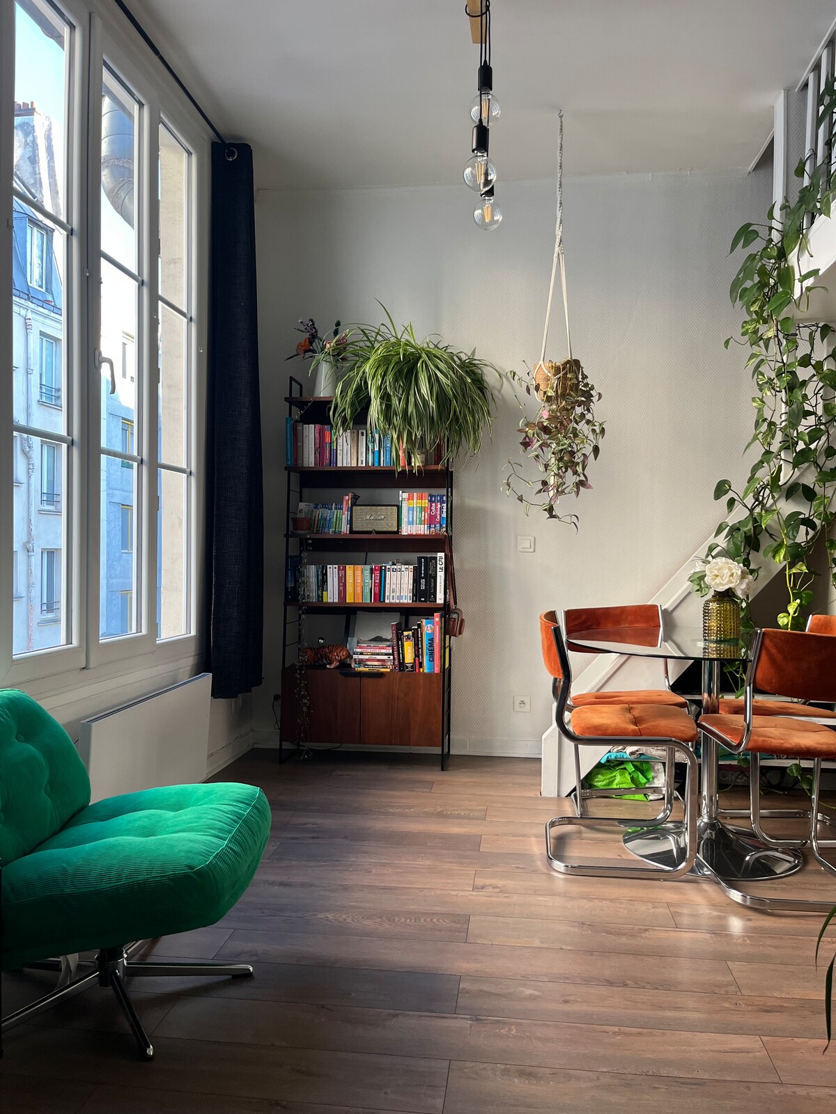 Carefully designed, this sunny 70s apartment with SW terrace was written about in Architectural Digest, ELLE Deco, and other design publications. Recently renovated by an architect, it’s located at 200m from the famous Buttes-Chaumont park, 1 minute from the metro, and 400m from the Canal. Located in a quiet street between the park and the canal waterfront with its cinemas, trendy bars and restaurants. Back home, take a bath or chill at the sunny South-West terrace.