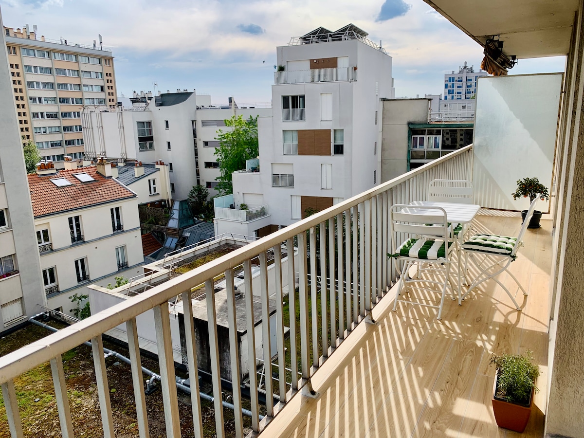 Beautiful bright apartment of 46 m2 + balcony of 10 m2 located in the Jourdain district, close to the Parc des Buttes Chaumont. Perfect for a couple or single person wishing to enjoy the calm of the neighborhood and the beauty of the park, while being close to the attractions of the city. The apartment has one bedroom, one bathroom, large living room, fully equipped American kitchen, and a south-facing balcony. Cleaning is done before and after each guest.
