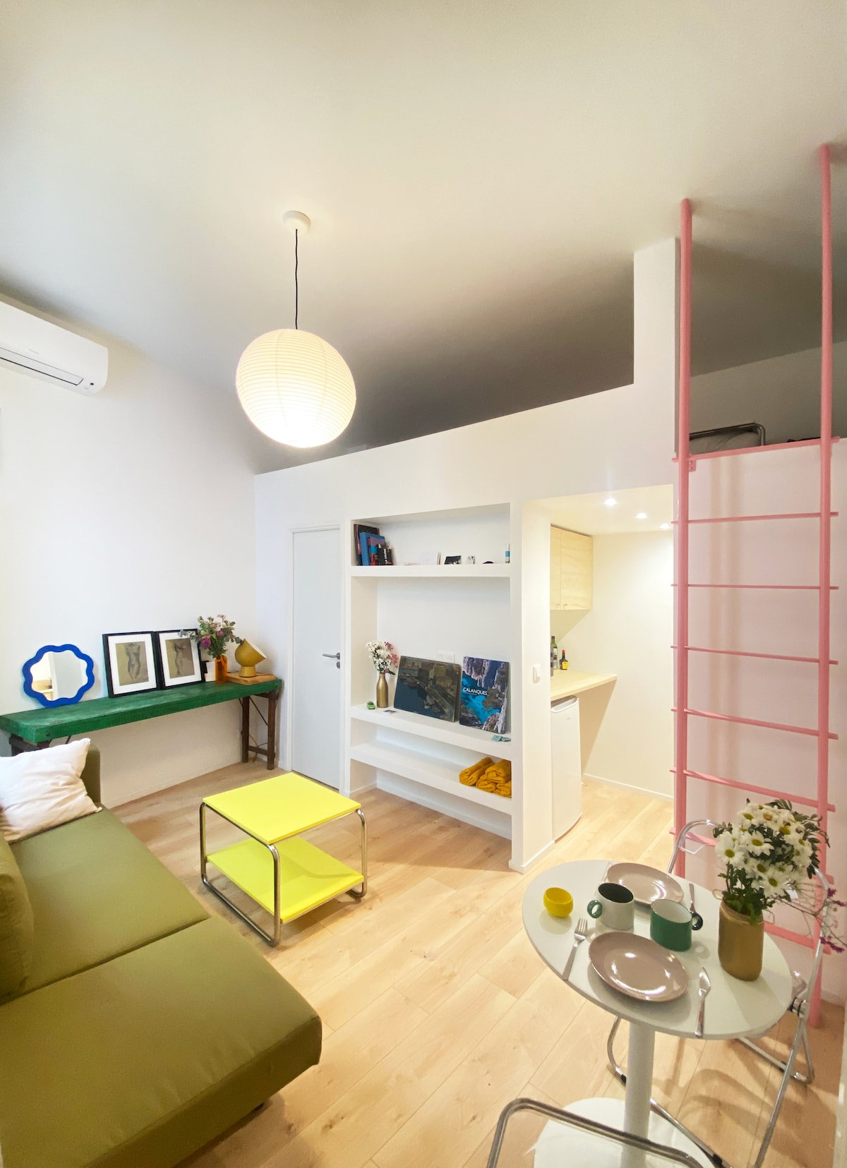 Nice 30 m2 T1 + 15 m2 mezzanine. The charm of the old refurbished, in the heart of the Camas district, an atmosphere that is both lively and family-friendly. Very central and everything you need next door: restaurants, bars, shops, laundromat, bakery. Tram 20 meters away and direct access to the Noailles district above the Old Port and the Blancarde train station. Sleeping area with double bed on the mezzanine. Separate equipped kitchen, oven, microwave, kettle, coffee machine
