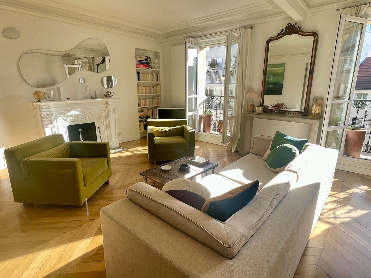 Spacious 100m² flat in Paris’s 5th arrondissement, with park views from the kitchen & master bedroom. The 5th’s historic—old streets, landmarks like Notre-Dame & the Pantheon a 10-min walk, & a lively local vibe with cafes & shops on Rue Monge. Near markets & metro. Bright & stylish, with a balcony off Rue Monge, chandelier dining room, & marble kitchen. 2 bedrooms: master with private bathroom, 2nd with balcony access. 4th floor. One A/C unit per room.