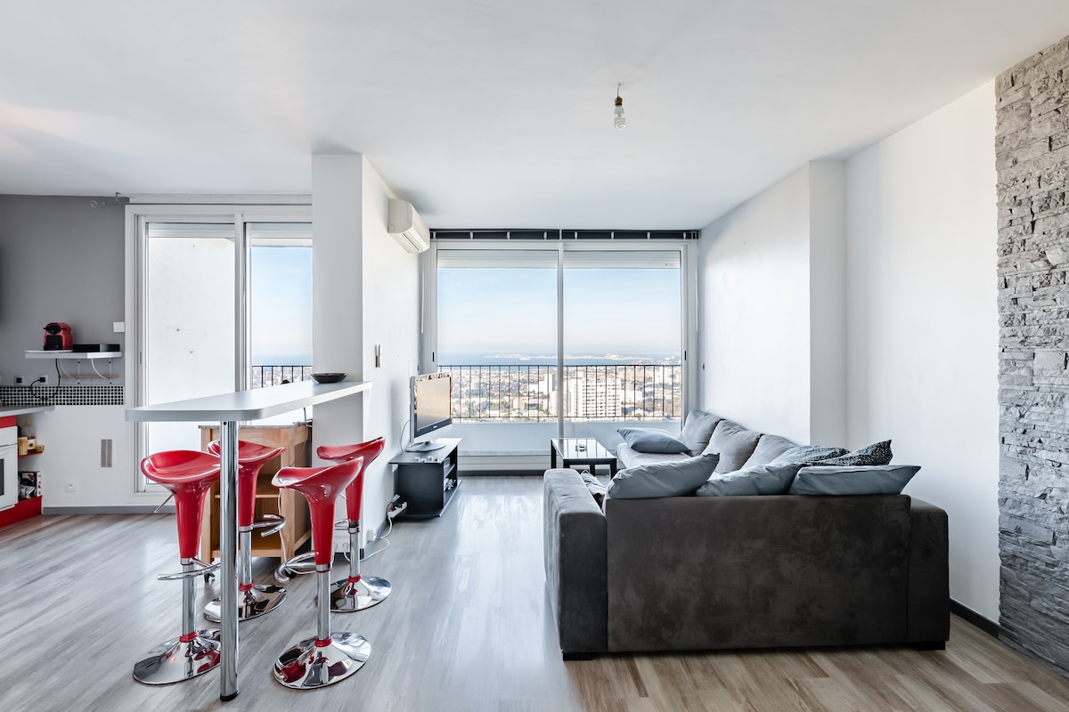 T2 50 m2 panoramic sea view and all of Marseille