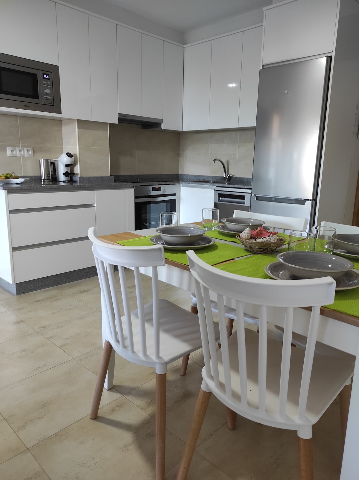 Relax and unwind in this charming home. Located in a quiet environment and very close to the famous A Lanzada beach, a ten-minute walk away. Close to the highway that will connect you with the best-known cities in Galicia (Pontevedra, Santiago, etc.) near O Grove, Sanxenxo, etc. The apartment has two bedrooms, two bathrooms, a living room, a kitchen, a balcony without a terrace, and a parking space. It's fully equipped for a carefree vacation.