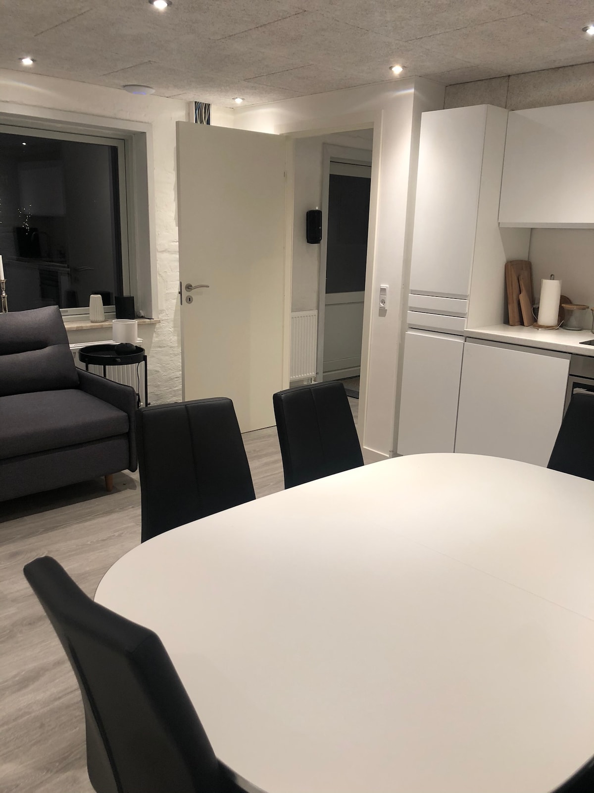 We have renovated the premises in 2020, so they look nice. The premises consist of a family room, entrance hall, kitchen, bathroom, living room on the 1st floor. Total approx. 90 m2. Large north-facing terrace with sun from the southwest and west. Access to a large lawn. There is a lockbox if we are not home when guests arrive.