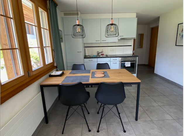2-room apartment 39 m2, on the ground floor, south facing position, with a wonderful view on the famous mountains (Eiger View!). Modern and cosy furnishings: living/dining room with cable TV and radio. Exit to the terrace, 1 room with 2 beds, kitchen, Shower/WC