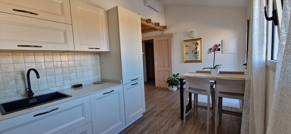 Nice apartment less than a 5-minute walk from the historic center completely isolated from noise. Breathtaking view of part of the Maddalenino Archipelago. The house is equipped with air conditioning, washing machine, private covered parking. The apartment is on the second and top floor of a small building of only 6 units. The entrance gives access to the living area/open kitchen with sofa bed. Bedroom with terrace equipped with double bed and foldaway bunk bed.