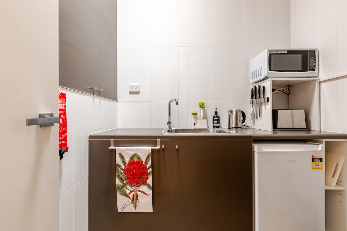 A self contained, quiet, light filled inner city sanctuary with unlimited street parking, a private street entrance and a small sunny garden with seating. A short walk to the station, a five minute train ride Melbourne CBD. Close to popular local cafes and nearby grocery stores. Expansive native parklands with walking paths and running tracks located at the end of the street make a pleasant retreat.Note: kitchenette is set up for basic food prep.