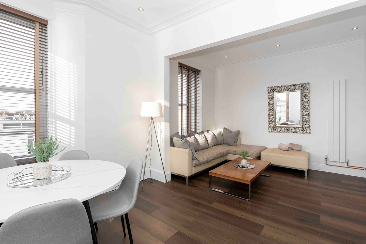 Recently updated !This centrally located duplex apartment features three bedrooms, high ceilings, and two bath/shower rooms. Enjoy convenient access to superb local amenities, including a Sainsbury's supermarket just 30 seconds' walk from the property. We offer a weekly housekeeping service for stays of 8 nights or more. Add a meet-and-greet with check-in and luggage help, or airport transfers, for a small fee. Start your stay with ease ! Please note this service requires min 72hrs notice.