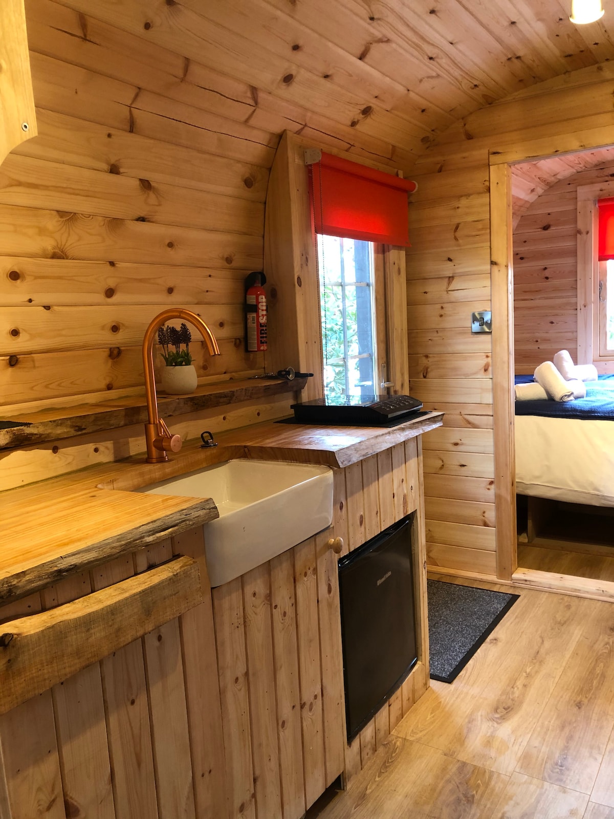 Cedar pod with a small kitchen, double bed ,shower, toilet , underfloor heating , kettle, toaster, microwave, hob induction, we are near the mawddach estuary ,situated half way between Dolgellau and Barmouth where there are many shops, restaurants, cafe, we are an hour drive away from snowdon and 10 minutes drive away from cader idris mountain, plenty of walking paths in the area. secure sheds available to store bikes
