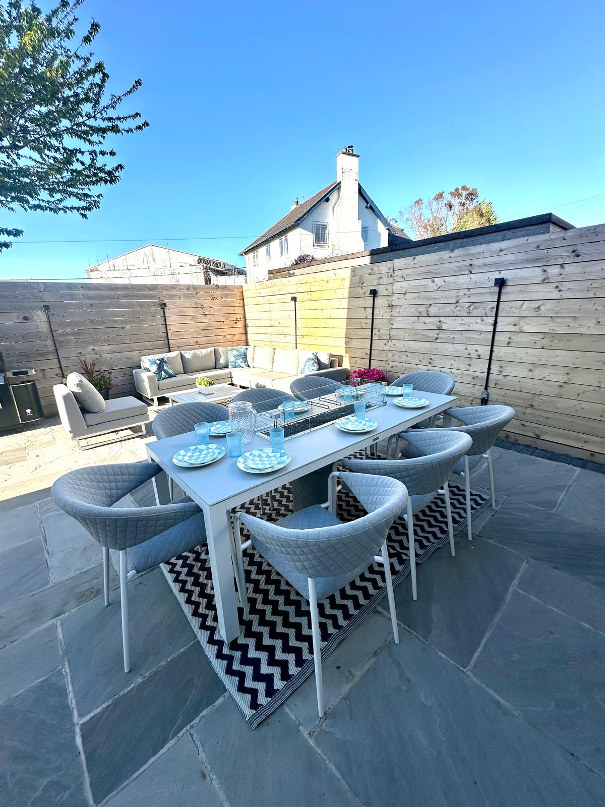 Brynmôr Bach is a light and airy, recently refurbished, semi-basement garden flat. Open plan design kitchen/dining/living area. Double bedroom & bunk bedroom. Lovely garden with mediterranean style courtyards, summerhouse and rural views. Travel cot & high chair available. Off road parking. 5-10 mins walk to pubs, restaurants, shops and beaches. Why not book 1 Brynmôr, the three bedroomed house above which sleeps 9 & hot tub, to extend accommodation for larger groups at the same location?