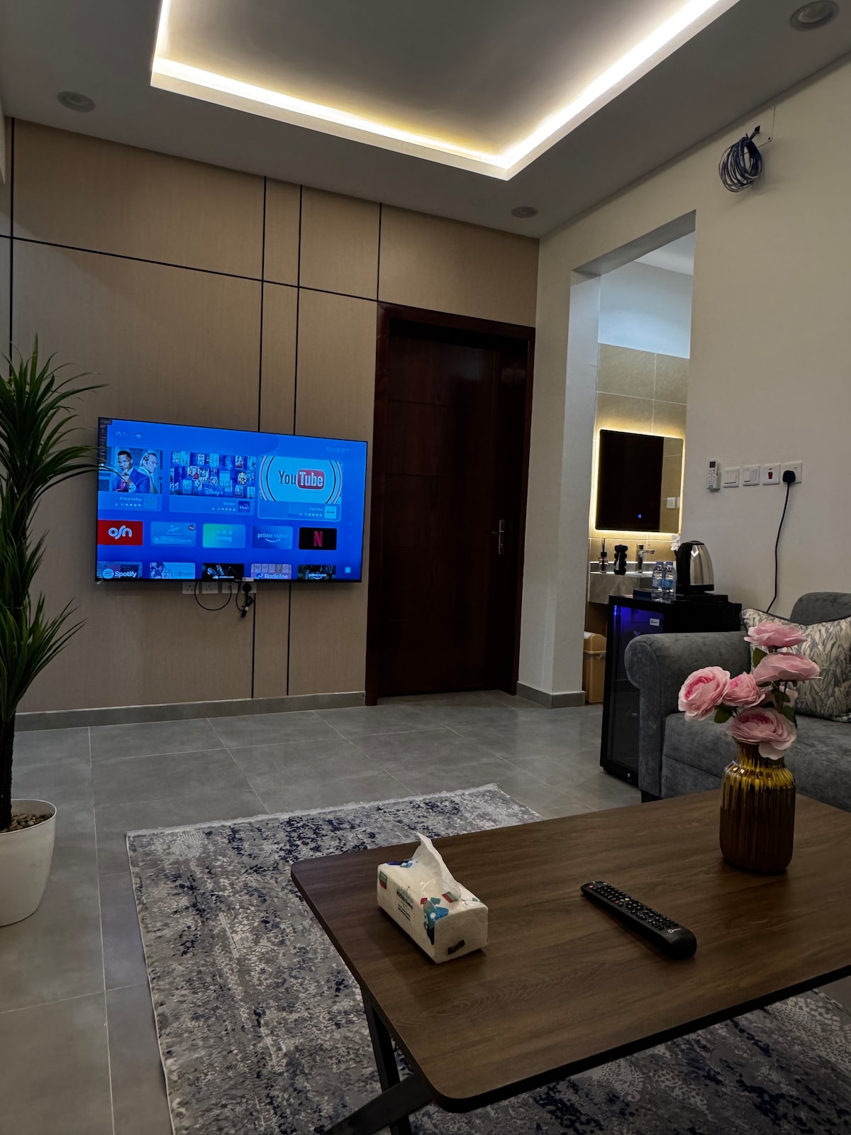 Luxury Aparthotel - Self Check-in Located in the heart of Abha on the ring road With a partial view of the Green Mountain and the Fog Roundabout Place details: Elegantly designed living room with 75-inch screen Coffee bar and morning breakfast + complimentary hospitality Bedroom with master bed, bathroom and full kitchen Internet open at 500mp Subscription to Shahid VIP + Shahid Sports Netflix + stc tv subscription Designed for you to meet all the needs of the guest To live a unique and special experience in Abha We wish you a pleasant stay...🤍