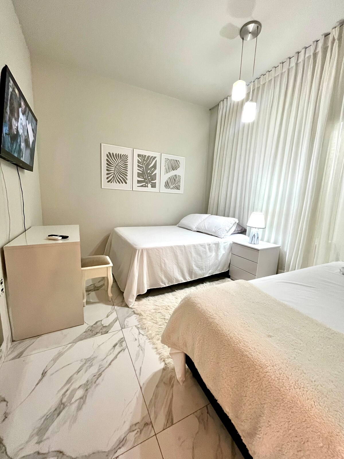 Modern, renovated and well-located apartment! In a gated condominium with 24-hour security, ideal for a comfortable and practical stay. Excellent location, with supermarket, pharmacy, butcher shop and gas station right in front. Minutes from the Horto Florestal – perfect for enjoying nature during your season.