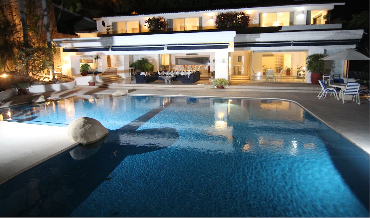 Villa Ajna, Hermosa casa de lujo ubicada en una de las zonas más exclusivas de Acapulco con hermosa vista a la Bahía, amplio Jardin y alberca. Pregunta por habitaciones adicionales para grupos grandes. También ofrecemos transporte seguro y cómodo. Acceso total a todas las áreas de la casa. Amenidades: • Alberca privada • 4 recámaras con baño propio y aire acondicionado • TV y Wi-Fi • Parrilla asador