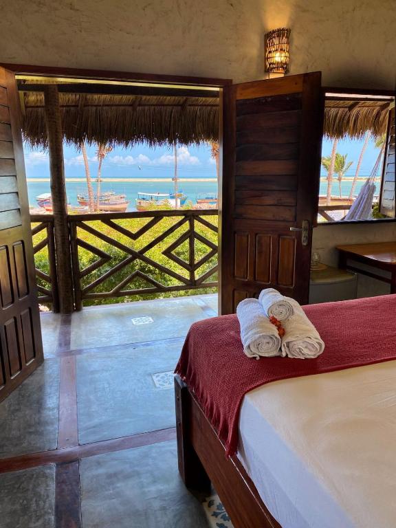 Oceanfront Bungalow-style House! Privileged view of the Barrinha seafront. It can accommodate 4 people comfortably. Living room with dining table and sofa for home office, great Wi-Fi available. Kitchen equipped with stove, oven, refrigerator and utensils. Spacious suite with Air Conditioning, cabinets, safe, 1 Queen bed and 2 Single beds, Large bathroom countertop. Hot water in the bath and privacy. Covered Balcony with Hammock for rest and outdoor furniture for a Good Coffee/Lunch with Sea View.