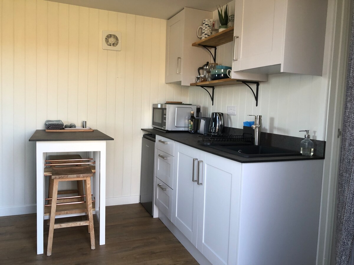 The Red Fox Retreat is the ultimate luxury glamping getaway location. A twist on the more conventional ‘pod’, the cabin features a curved wood interior entered from an arched doorway in front of which is situated a perfectly appointed king sized bed with amazing views of the Trottenish Ridge and the croft (farmland) that surrounds the property. It is warm and cosy to protect against the elements and yet light and airy. The cabin is accessed via a spectacular large undercover deck area.