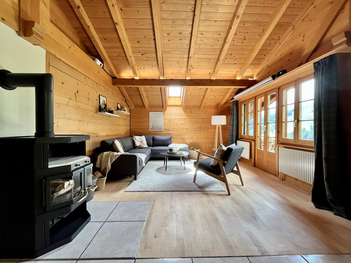 The house is newly built and was successfully opened on 22/12/2025 for the 2025/26 winter season The interior is cosy with antique spruce in chalet style with high-quality materials and a Finnish sauna. The view is breathtaking, the perfect location is right in front of the entrance to the village of Adelboden. 2 minutes' walk to Coop 5 minutes' walk to the village centre. 2 free covered parking spaces (maximum height 210 cm) with electric car charging station, payable by credit card. No pets.