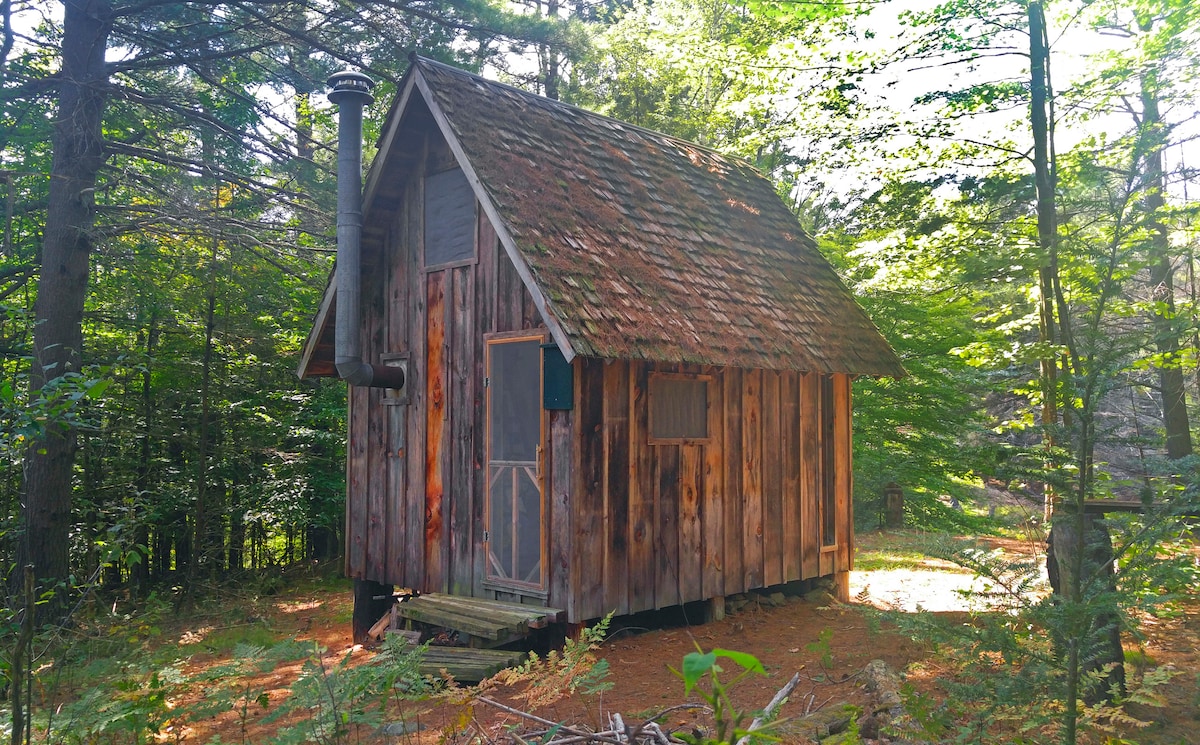 This tiny, magical, rustic, cabin is situated overlooking a large pond on a private property of 200+ acres. Though the cabin is very small (about 10x12 ft with an upstairs sleeping loft) it is quaint and lovingly made with hand split cedar shingles and locally harvested wood. There is an outhouse and no power/running water, but a 5 gallon cooler of spring-fed drinking water is provided.