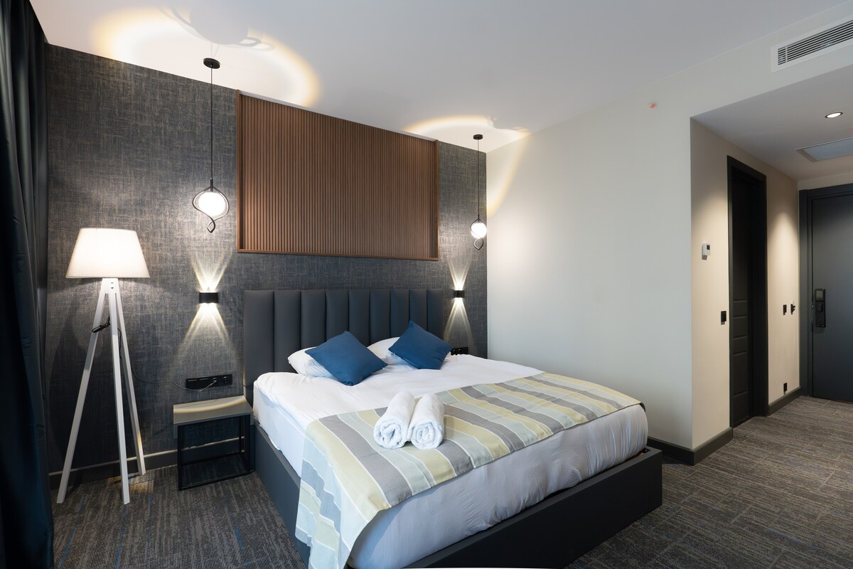 Experience luxury comfort in our spacious Executive Suite, ideally located just 250m from the beach. Unwind in a luxurious king-size bed and enjoy modern touches like a Smart TV, high-speed Wi-Fi, a private bathroom, and a balcony. Enhance your stay with access to premium facilities—including a seasonal pool, spa, gym, and sauna—available as part of select packages or for an additional fee. Complimentary tea/coffee, and essential amenities are provided to ensure a refined and relaxing stay.