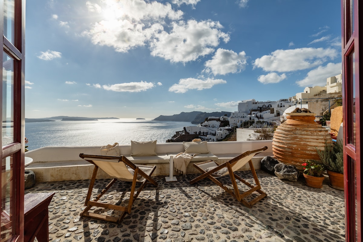 A traditional cave villa with modern touches that can accomodate up to four people with spacious veranda and breathtaking caldera views. Lathouri Cave Villa is perched on the famous caldera cliffside overlooking the Aegean sea and the two volcanic islands Palia and Nea Kameni. The traditional cycladic architecture along with the unique scenery makes it the perfect choice for those who want to enjoy a relaxing vacation in the lap of luxury.