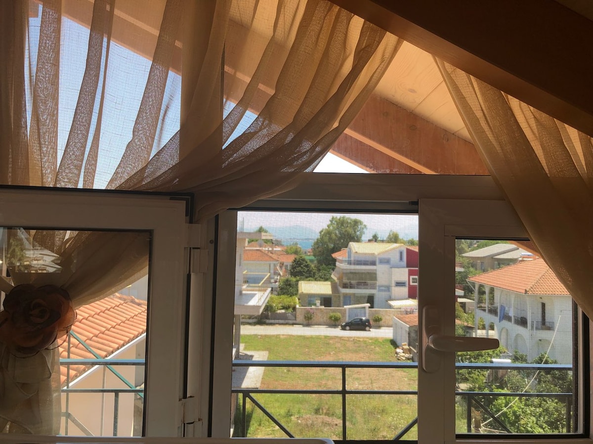 Πρόκειται για σοφίτα 60τμ .Διαθέτει ένα υπνοδωμάτιο, ευρύχωρο μπάνιο και μεγάλο σαλόνι με κουζίνα, καθώς και δυο μπαλκόνια με μαγευτική θέα στη θάλασσα. Είναι ιδανικό να φιλοξενήσει έως 5 άτομα. Βρίσκεται σε απόσταση 8 χιλιομέτρων από το αεροδρόμιο του Ακτίου και 9 από το κέντρο της Λευκάδας.