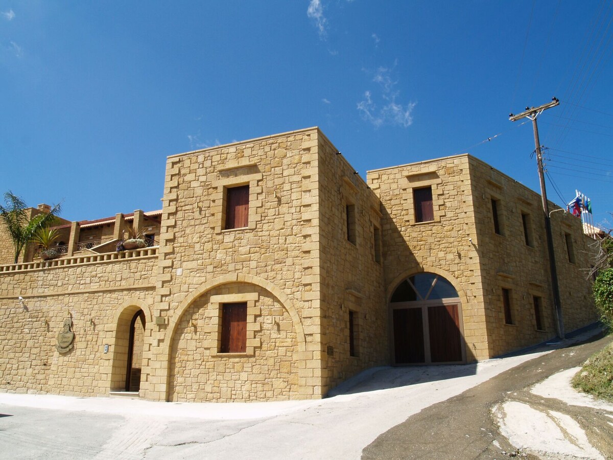 A carved, stone castle, surrounded by age-old olive groves and vineyards, gorges and Byzantine churches, for unique vacations. The old manor of the Loupassi family was restored and expanded. Choose from royal suites, two-storey rooms with a fireplace or traditional attic rooms. Enjoy your drink by the pool.