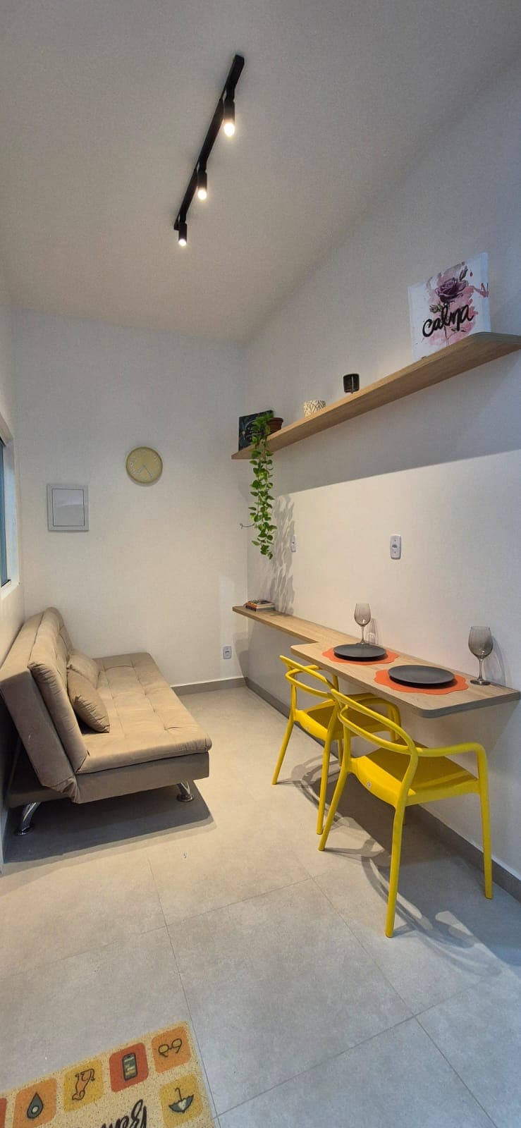 Modern and cozy ground-floor apartment designed for comfort and convenience. Built with thermoacoustic panels, ensuring a quiet and sophisticated environment. It offers 17m² of indoor space + 5m² of balcony with a shared laundry area. Tempered glass doors with reflective film (90% coverage), with curtains recommended at night for better privacy. Independent entrance, attached to the host’s house. Parking available upon request for an additional fee.