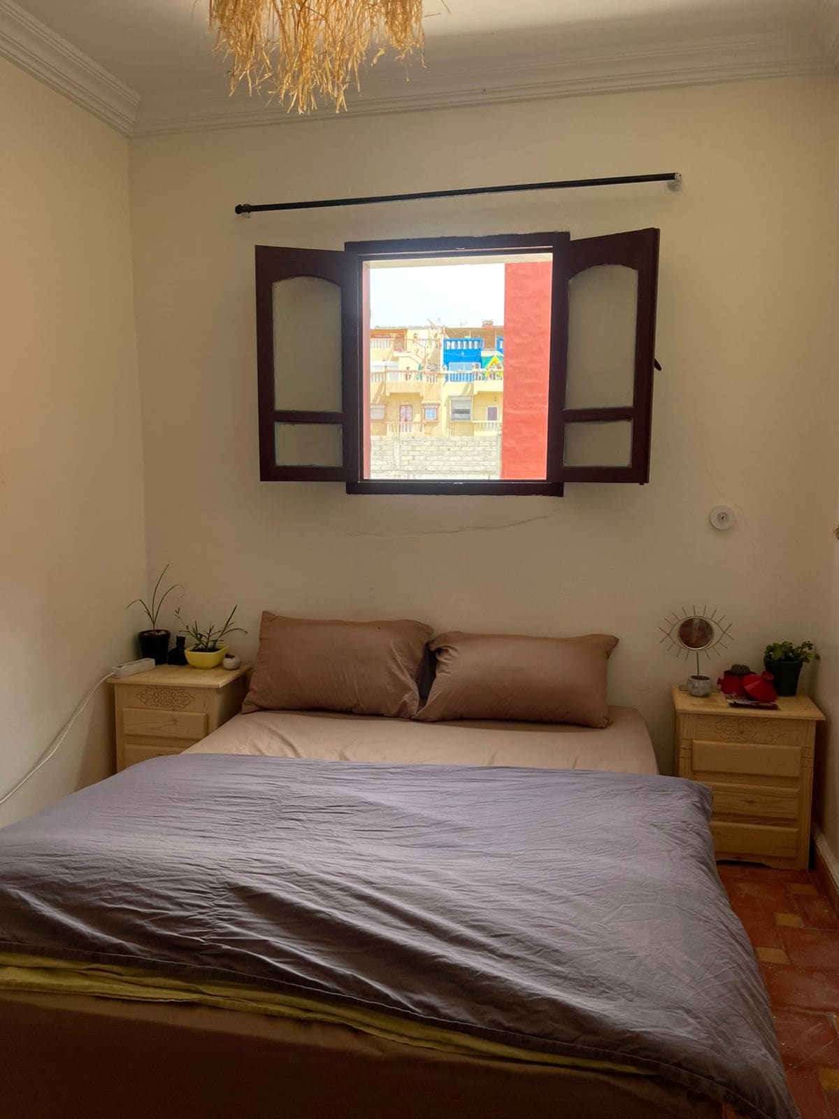 Cozy twin room inspired by the traditional charm of Fez, offering a peaceful and bright space to relax after a surf day. Located on the second floor of Nomazigh Surf House, guests can enjoy access to the chill terrace, co-working area and a rooftop with ocean view. Just a short walk to local bakery (1 min), Happy Tamraght restaurant (2 min), and Manzili Co-working (4 min). Close to popular surf spots like Devil’s Rock and Banana Point.