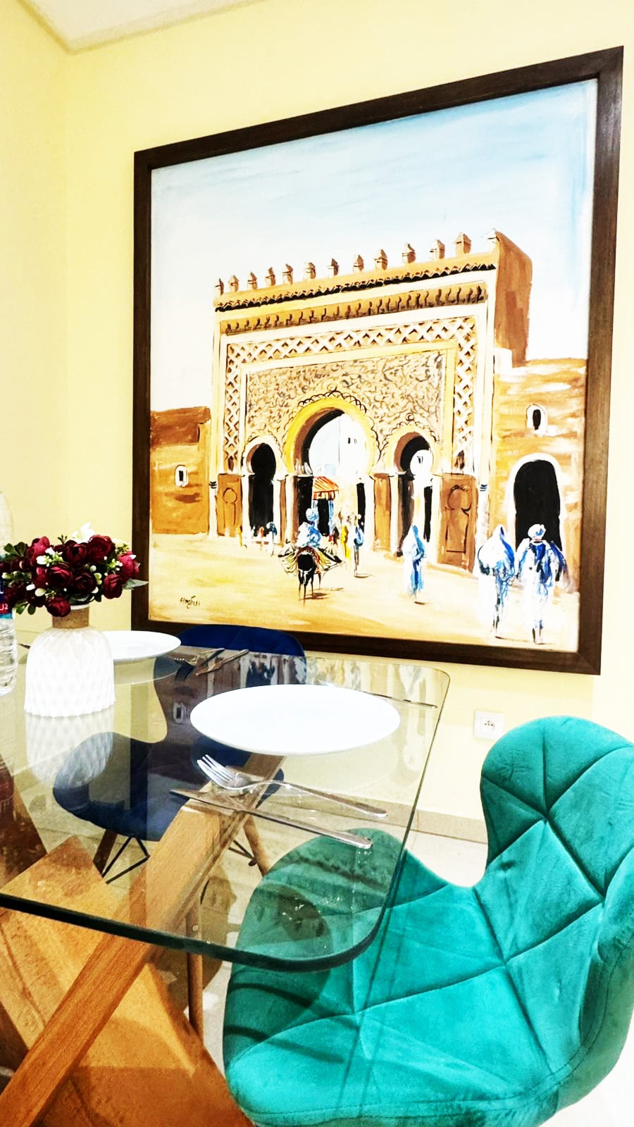 The apartment consists of a beautiful air-conditioned living room with fiber optic Wi-Fi, a 60-inch smart TV, IP TV app, Netflix, Shahid... also a PlayStation for your kids for more fun. In the living room, a dining area with 6 chairs very well-equipped modern kitchen with laundry exit to do your laundry. master bedroom with a large king size bed, 📺 connected television and air conditioning. children's rooms 2 separate beds with exit to balcony.