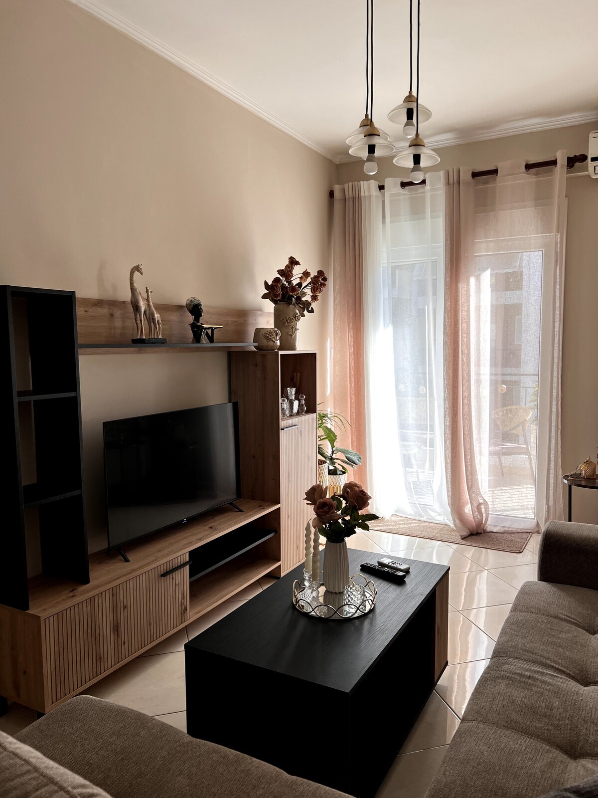 Το διαμέρισμα βρίσκεται σε μια ήσυχη γειτονιά μόλις 170 m από τον Μύλο των Ξωτικών, 7 λεπτά με τα πόδια από το σιδηροδρομικό σταθμό και 15 λεπτά από το κέντρο των Τρικάλων. Ο χώρος έχει διαμορφωθεί και διακοσμηθεί με καινούργια έπιπλα έτσι ώστε να είναι κατάλληλος για μια ευχάριστη και άνετη διαμονή.
