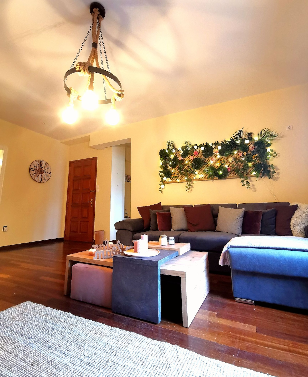 This exquisite apartment is located at Valaoritou street in Agia Paraskevi, one of the most beautiful areas of the southern suburbs of Athens that has a lot of green areas, quietness and safety. Its privileged position offers easy access to Attica Tollway (only 800 m away from junction Y3) and a convenient parking space. In order to go to the center of Athens, visitors will need approximately 11 minutes, as the metro station is only 90 m away from the apartment.The neighborhood has a lot of parks, restaurants,cofee shops,gym and a big super market near byThe whole building, the interior of the apartment and the exterior balkony area are constructed in a way, so that the house is functional and tasteful. Its equipment and furniture are selected with a focus on modern and minimal style. The apartment is arranged so that it can accommodate a couple or a family with (2) children. In the main area, there is a living room with a corner couch that is easily transformed into a bed, situated in front of the fireplace that creates a warm and cozy atmosphere in the cold winter nights. The kitchen is fully equipped with all necessary kitchenware and has a spacious refrigerator, a washing machine and an electric oven. The bedroom has a queen-size bed. When you open the main French window of the living room, you step out in a beautiful balkony with a lot of plants where you can enjoy a coffee, lunch or dinner with the company of friends