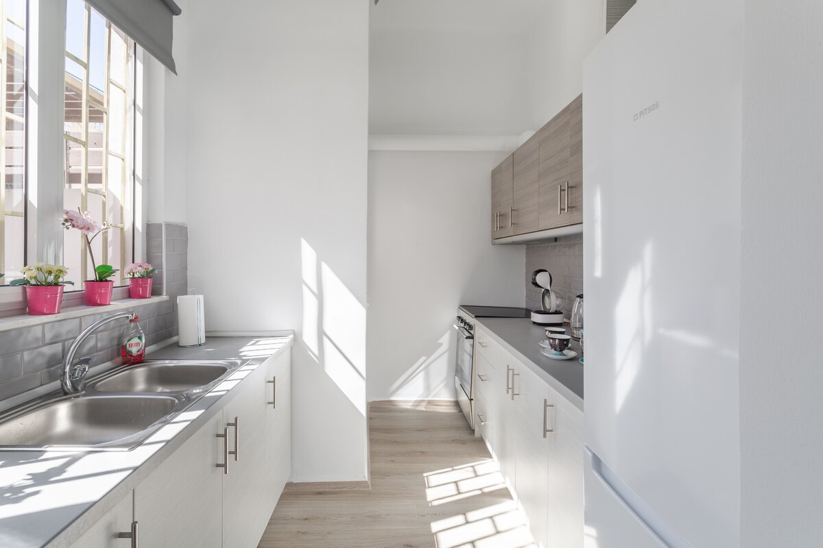 The apartment is located in the center of Piraeus and next to the port. Metro, airport connection, ferries, train, suburban train, bus station and tram all within 100 meters. Central location!! The apartment you are going to stay in is brand new and fully renovated with bedroom, kitchen, living room 69 square meters with high standards and designed by an excellent architect. Located on the 4th floor. It is comfortable and luxurious to make your stay unforgettable!