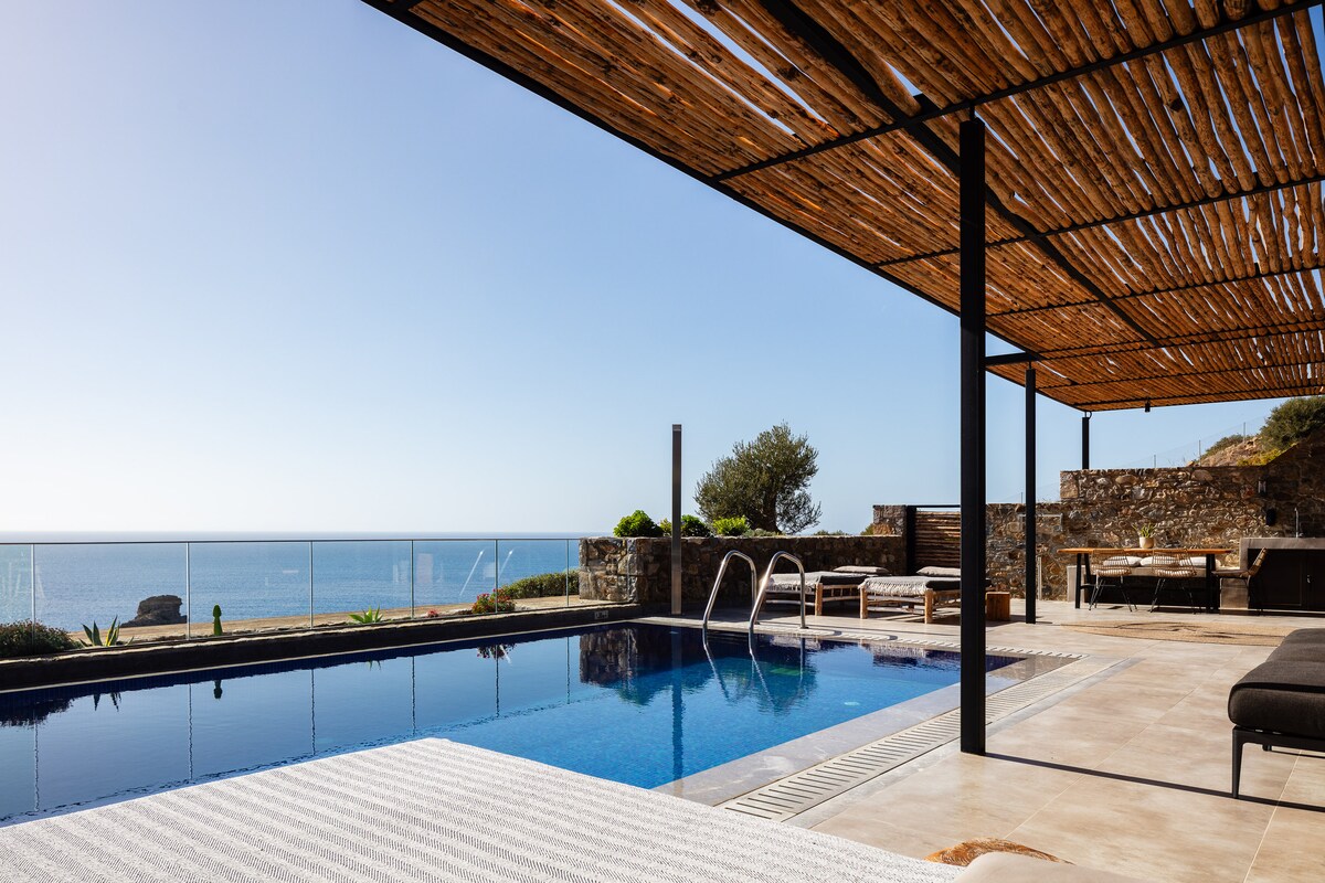 Imagine being mesmerized by a hillside cloud of the golden landscape of South Crete& the deep blue sea that wraps itself around your brand-new villa.A fine example of contemporary design blending perfectly with local stoned structure,symmetry & earthly tones,all of them covered in a luxurious,yet familiar with Crete,aesthetic. It’s jewel, a divine 50sqm infinity pool,is offering breathtaking views of the Libyan Sea.Starry nights & al fresco dinning will surely be a memory you will not forget!