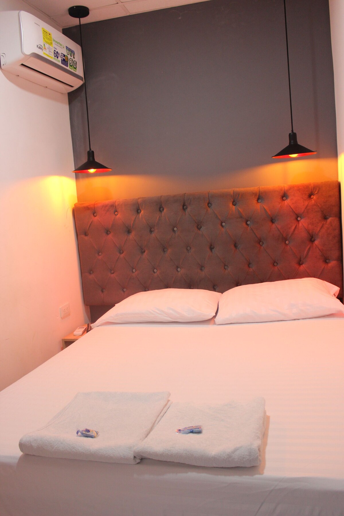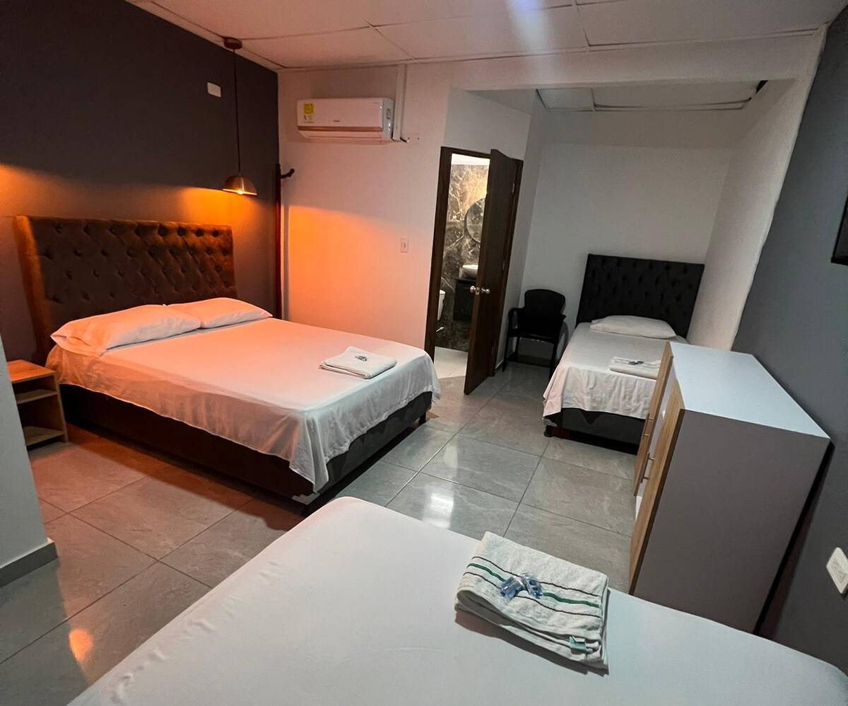 Enjoy a stylish experience in this accommodation, an apartment on the third floor of the Sagrado Hotel via the Colombian coast, easy access on highway #45 and ample free and safe parking! We have laundry service and restaurant. We look forward to seeing you It has 2 bedrooms *one bedroom with a king-size bed (2*2) and a 55" TV *the other room with two double beds and a 55" TV *one bathroom *Dining room *refrigerator * Kitchen *"staircase access" * washing machine