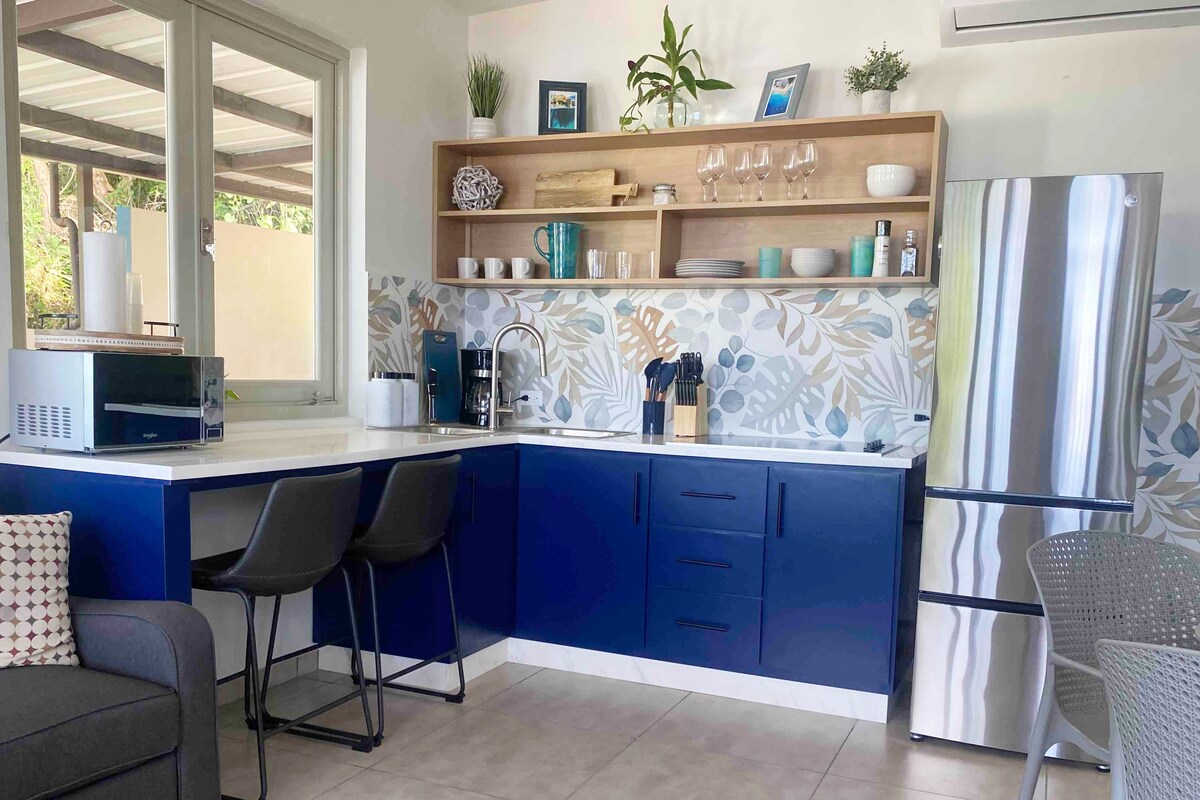 Enjoy romantic sunsets right on your front steps. The Nest is the only exclusive waterfront property on beautiful Crash Boat Beach. Relax on your very own beachfront deck complete with a shaded hammock area and a lounging sunbed area that complements our cozy air-conditioned studio apartment overlooking the ocean. Our beautiful outdoor garden shower and exterior bathroom are an experience all on their own. Two guest parking spaces are located right on the property for your convenience.