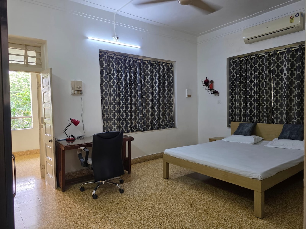 Beautiful, Spacious room (190 sqft) with large and modern attached washroom on the first floor in a peaceful society premises. We also provide usage of 2 big patio area. Perfect for you to spend evening time for talks and dinner. Both area can be accessible from your room. We provide various unique amenities which are rare to find (kinda unheard of as per me). We already talked about patio. We also give Netflix, Prime, Hotstar on TV. Quick resolution for any issue. We've love to host you.