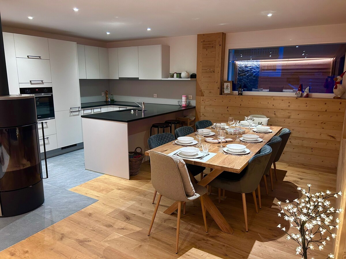 Very nice chalet for 4/6 people with exceptional views and great sunshine in a very quiet environment a stone's throw from Vermont train station. The large living room, very bright, is bordered by a balcony and a south-facing terrace facing the Alps. The dining area is equipped with a large friendly table and the living room side has two beautiful sofas facing a large TV screen with DVD player. The fireplace offers the possibility to make beautiful fires.