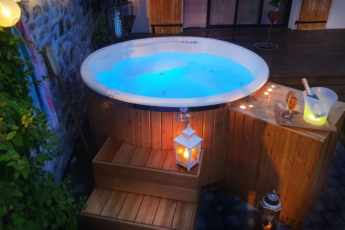 Kick back and relax in this calm, stylish space. Come and rest in this peaceful village, immerse yourself in the hot tub all to yourself, close your eyes, listen to your senses... Enjoy the sauna to complete the relaxation and the swimming pool in summer. For long stays (more than 5 days) possibility to change sheets and towels on request. A laundry room with washing machine and dryer will be open for stays longer than 7 days.