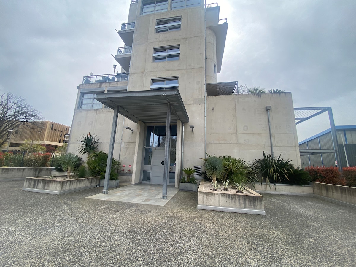 Conveniently located in the new city center Sextius-Mirabeau,facing the 5 * Renaissance hotel with private garage. Very easy access by car from the highway as well as by bus and trains(bus and train stations 5 to 10 minutes' walk) Luminous and sunny 55 m2 apartment Located on the 6th and top floor; 2 terraces( living room and bedroom) beautiful view of the largest urban water wall in Europe illuminated in the evening, gardens , the city , the hills (small view of Ste Victoire).