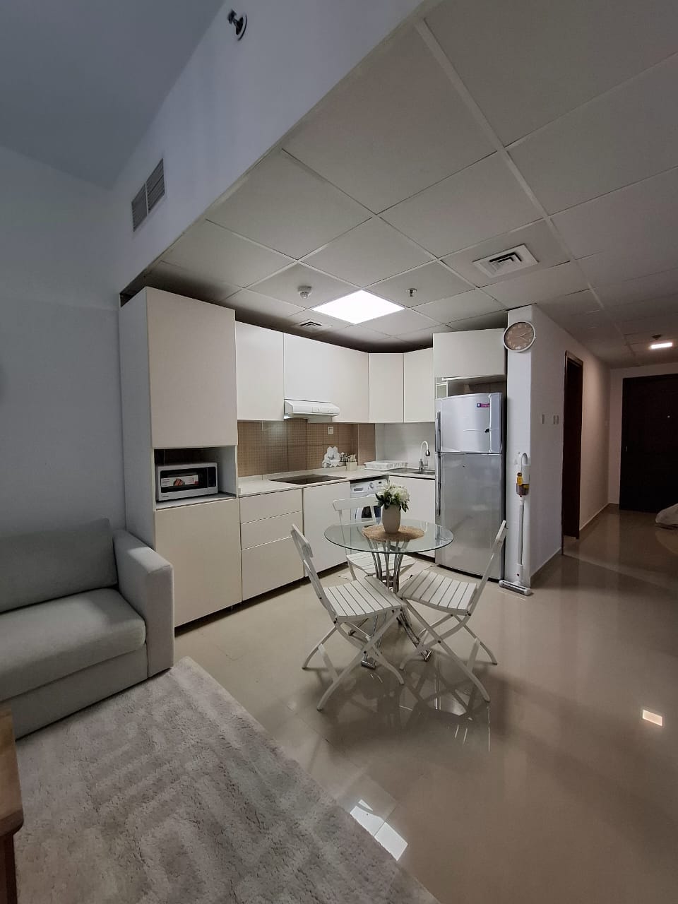 Hello! A modern, minimalistic studio apartment in the middle of the lively center of Ajman with a fully equipped kitchen, living room, dining set and a lovely city view. *Special rate is available for monthly booking + dedicated car parking inside the building + cleaning/ housekeeping service. Nuaimia Tower C is a beautiful community in the center of Nuaimia. Choose from hundreds of daily activities and nearby cafes, restaurants, salons, and 24/7 supermarkets.