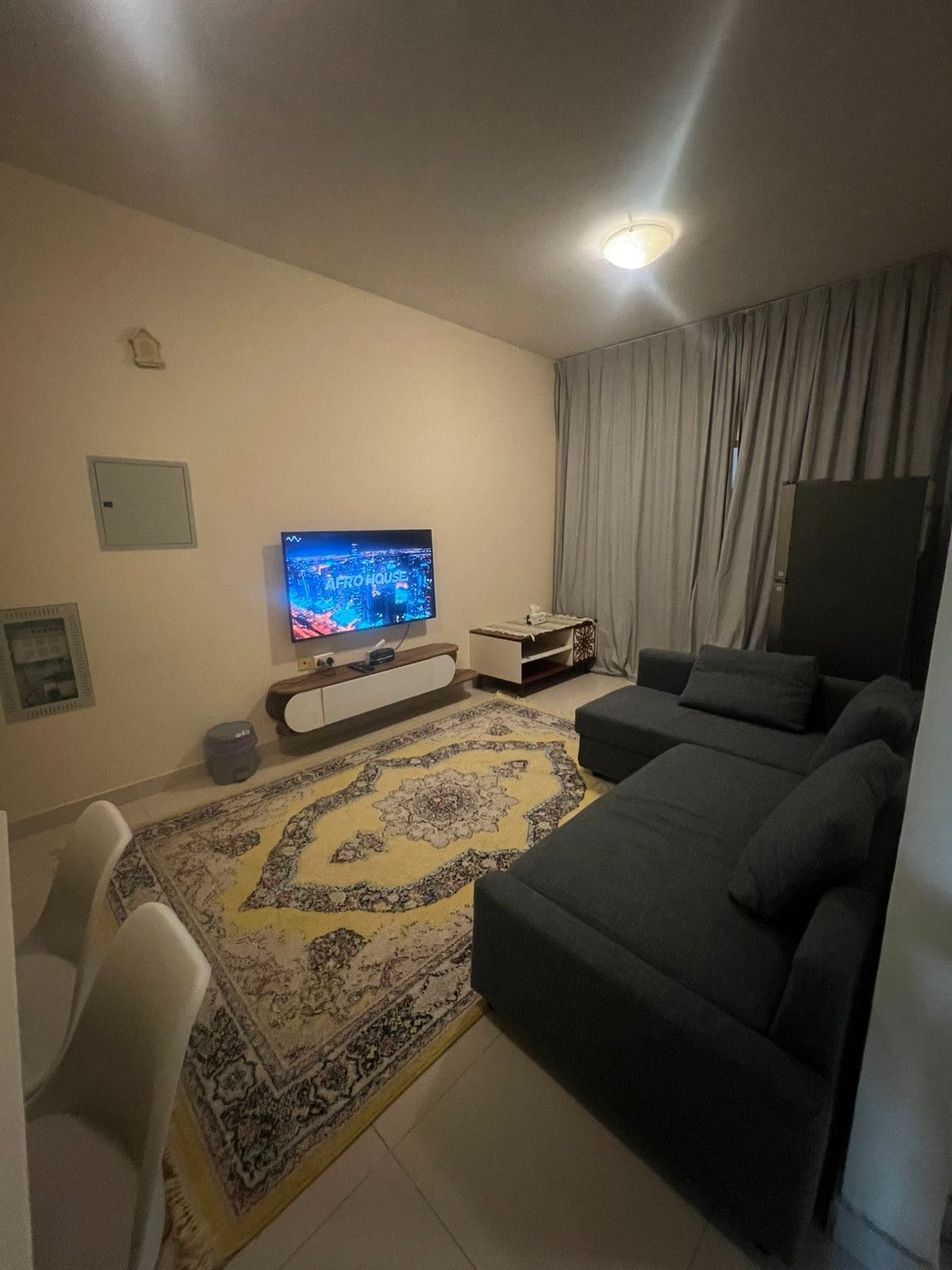 Its a small studio 360sq/feet n its equipped with all basic n modern facilities . Its in the centre of ajman easy excess to all place just 5 min drive to excess dubai road 10 min drive to beach n its surronded by restaurants n cafes n hyper markets.