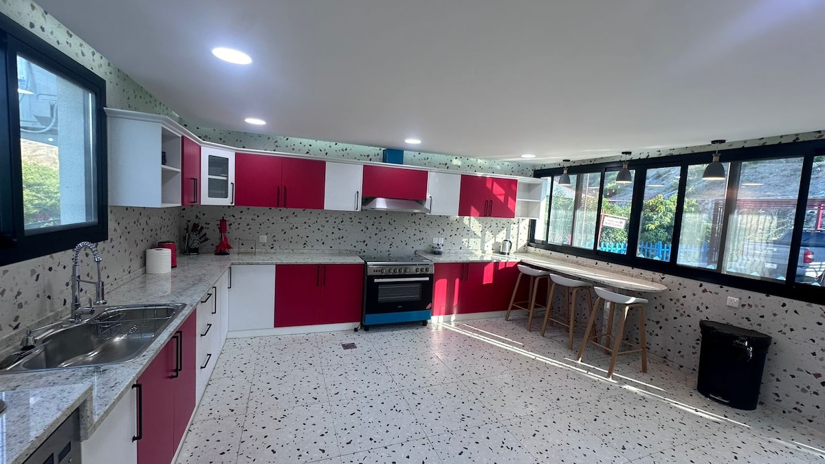 The perfect Farmhouse for a big gathering! Consists of two floors, a and two living room, 6 master bedrooms, as follows: - Room 1: King-size bed for two people - Room 2: King-size bed for two people - Room 3: Queen-size bed for two people + single bed for one person - Room 4: Queen-size bed for two people + single bed for one person - Room 5: Queen-size bed for two people + single bed for one person - Room 6: Queen-size bed for two people + single bed for one person Please bring your towel