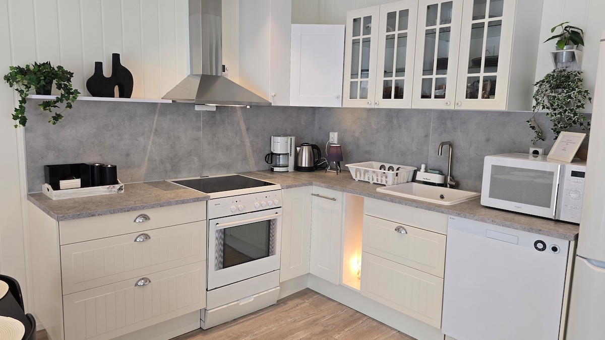 This is a newly renovated and airy mini-house with double bed, kitchen with dining area, wardrobe, bathroom and sleeping loft. There is free private parking on the premises. Centrally located with shops and public transport nearby. Short distance to the fjord with beach, restaurants and hiking areas. Good place also for families with older children/groups of up to four people, two of whom are mobile enough to use the stairs up to the sleeping loft. Private patio and access to lush garden in the summer months.