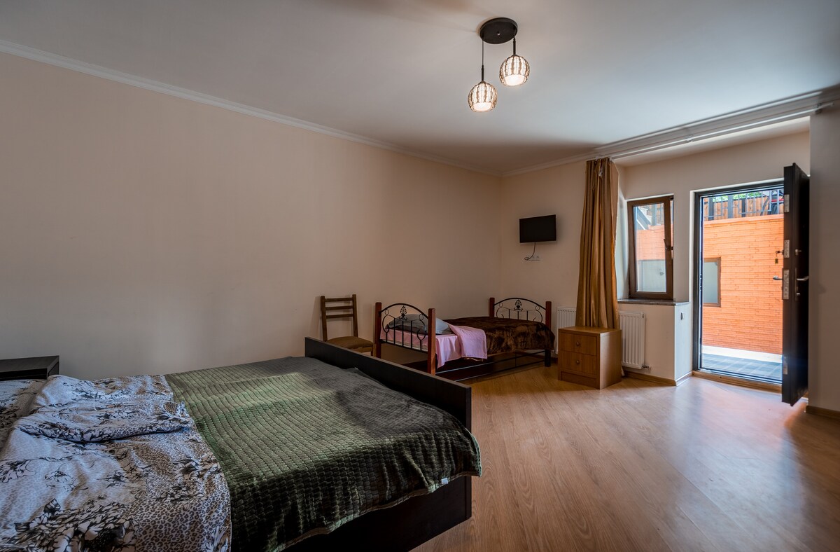 Уютно, со всеми удобствами, с садом и прекрасным видом в центре БОРЖОМИ. Красивая природа, хвойный лес, в 10 минутах от Боржоми Парка. Во дворе садик с цветами. Кровати очень удобные и комфортные, в номере есть кухня, душ и туалет. В доме есть плита, холодильник, стиральная машина, утюг, беспроводной Wi-fi интернет. Есть возможность жарить шашлык на мангал