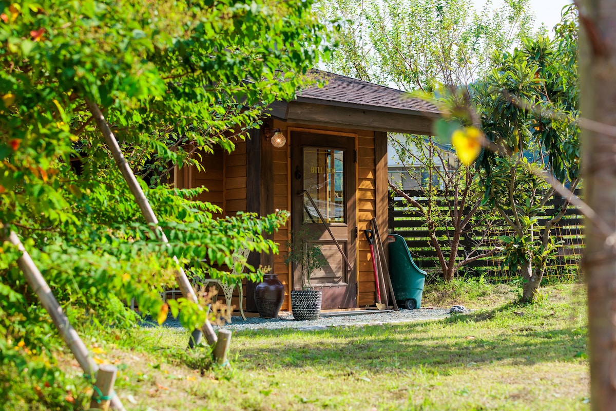 The two buildings, a 'small house' and a 'tiny house where you can stay with your dog', are located on a 700-tsubo (2300-square-meter) site and are available for private use by one group of guests per day.(Up to 4 people) There are many plums, figs, citrus fruits, blueberries and other fruit trees in the garden, and the fruits that have ripened on the tree are remarkably delicious.Please enjoy seasonal fruits to your fill. You are free to use the pesticide-free vegetables for breakfast or dinner. There are several places to relax on the premises, including a covered terrace, hammocks, and a terrace that is best for drinking beer and wine while watching the sunset. We also recommend picnics with small children and dogs in the lawn garden.Please feel the earth with your bare feet on the lawn. There are free-range chickens on the premises, but please be assured that they will be kept in the coop during your stay. Optional experiences include straw-grilled bonito and fine Italian leather craft.Nearby there are places to play in the river, paddle board, cafes, bookstores, etc. Please refrain from bringing dogs into the "Little House".