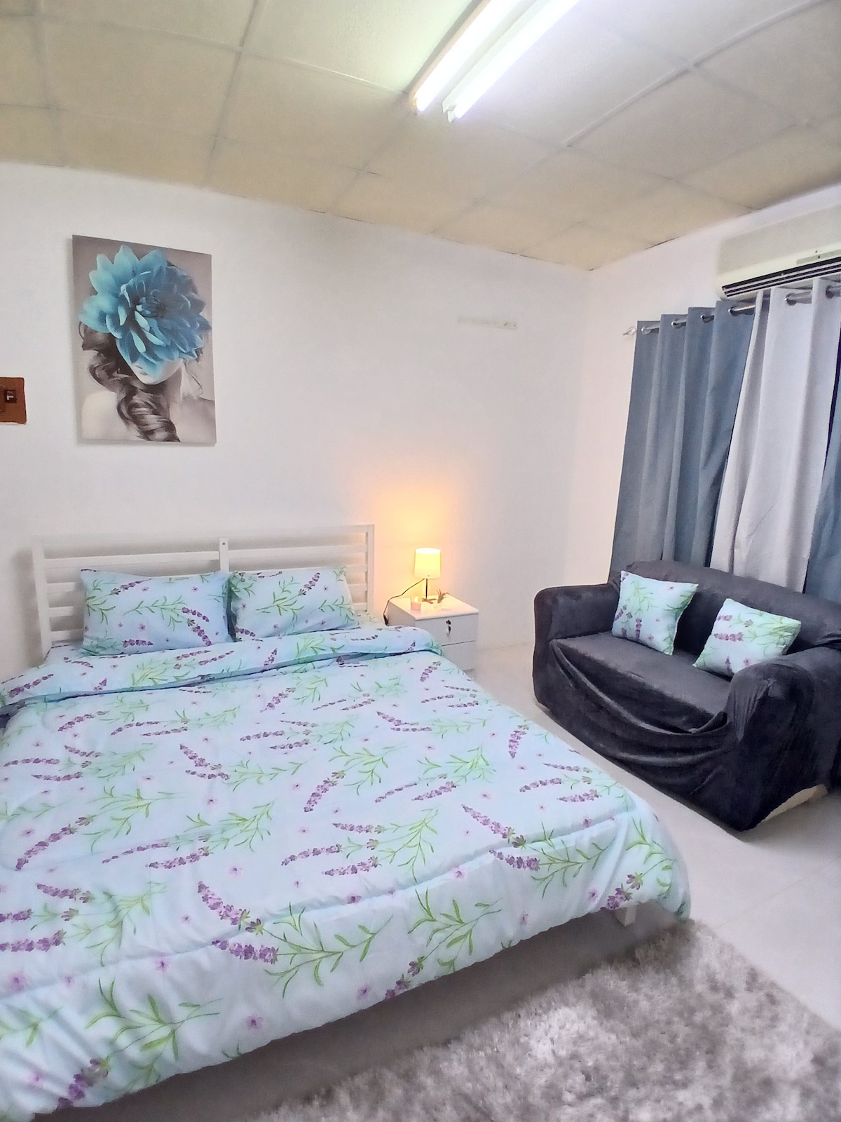 Stylish studio for daily rent in Al Ain - near Tawam Hospital and UAE University Enjoy a comfortable stay in a fully furnished studio in a prime location in Al Ain, near Tawam Hospital and UAE University. Private entrance to ensure complete privacy Fully furnished with a modern and comfortable design Equipped with all services: Internet, air conditioning, TV, and kitchen utensils Strategic location close to all facilities and services close to the Equestrian, Shooting and Golf Club