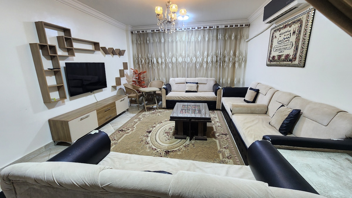 Our Nice hotel apartment offers 3 bedrooms, kitchen, hall and 2 bathrooms we're very near to the public services directly on the road, very nice and quiet place and the apartment is new and everything in the apartment is not yet used, the apartment is neat and clean and very nice to stay and relax, the AC is available and also wifi and very low cost compared with the hotel rooms.