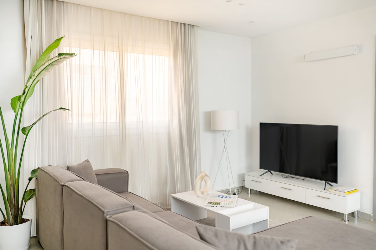 Stay in our clean, two-bedroom apartment just 5 minutes from the Pyramids and new museum. Our home has a fully-equipped kitchen and cozy living area. Enjoy high-speed internet and a 55-inch smart TV. Conveniently located with easy access to top attractions and close to shops, restaurants, and cafes. We offer security 24/7 and check-in 24/7. We look forward to hosting you and helping you have a memorable stay by the Pyramids.