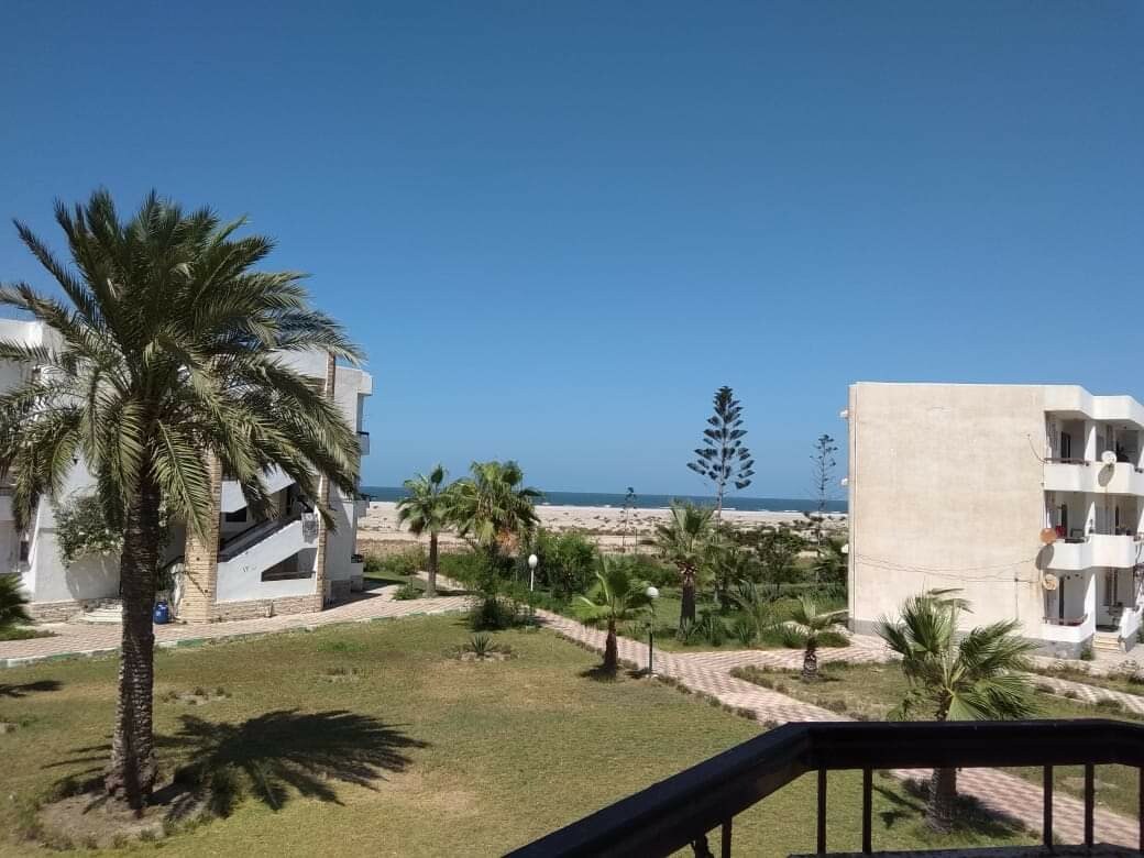 قرية سياحية مطله علي البحر المتوسط بها خدمات اساسية محلات و كافيهات شقة بها غرفتين و صاله الدور الثاني 👨👩👧 للعائلات فقط Shared swimming pool . private garden