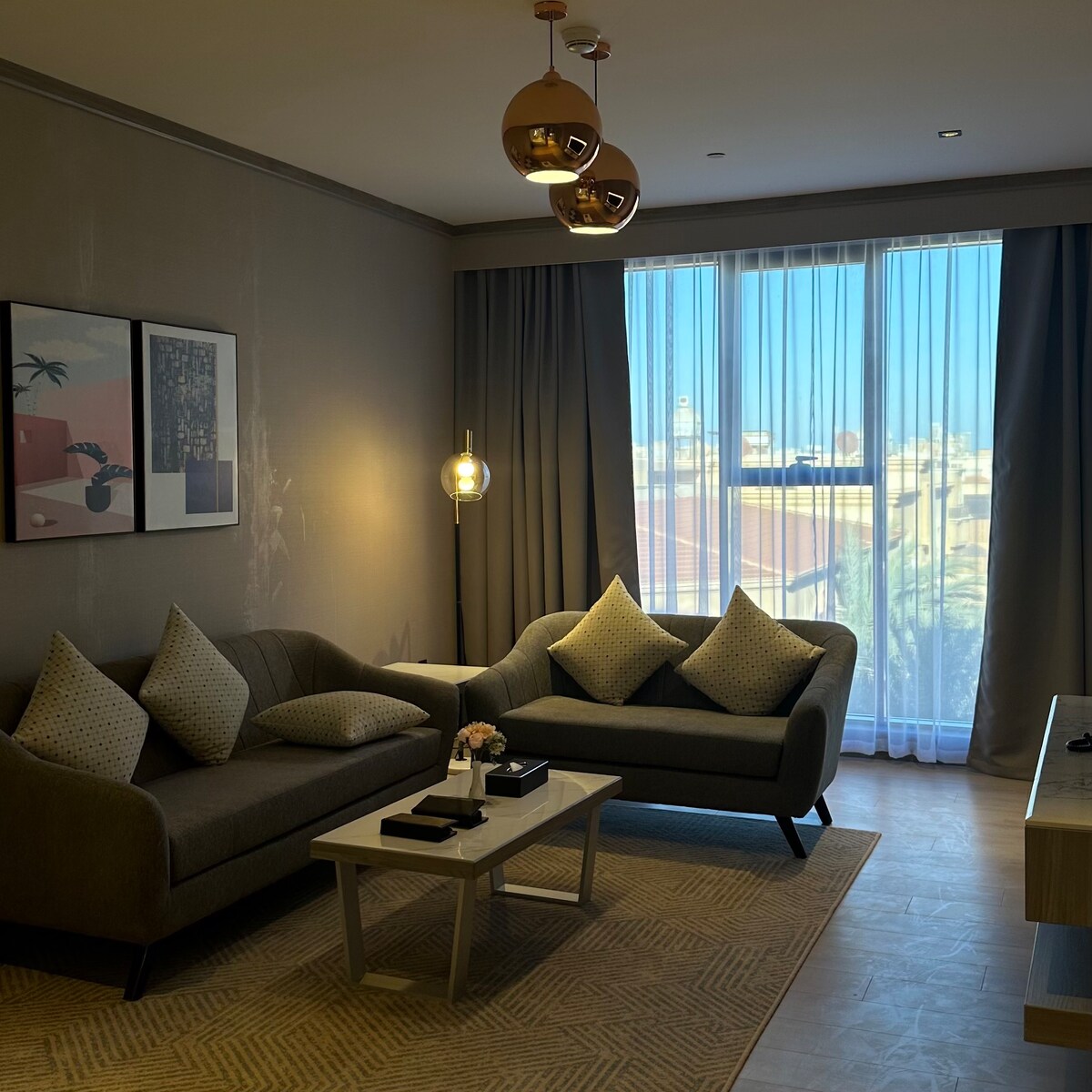استمتع بتجربة راقية في هذه الشقة الأنيقة التي تجمع بين الفخامة والموقع المميز. تطل الشقة على أحد أهم شوارع المدينة وعلى غاليريا مول مباشرة، لتستمتع بإطلالة مبهرة تجمع بين الحياة العصرية والمنظر الحيوي النابض بالحياة. 🛋️ الشقة مصممة بعناية فائقة لتوفر أقصى درجات الراحة والفخامة، بأثاث عصري ولمسات ديكور راقية. 🛍️ موقعها المثالي يضعك على بُعد خطوات مشياً على الأقدام من المولات، والمطاعم الراقية، والمقاهي الأنيقة. هذه الإقامة ليست مجرد شقة… إنها تجربة فريدة تعكس أسلوب الحياة الفاخر في قلب المدينة