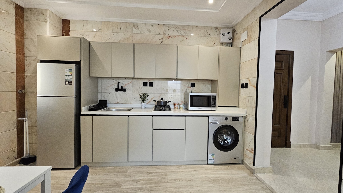 A modern apartment with the latest designs and the best amenities. We care very much about the customer in terms of hygiene and daily sterilization, professional customer service (we are proud of our customers' high high rating) It contains: A king size bed and a comfortable single bed. Kitchen - Microwave - Refrigerator - Kettle - Washing Machine Toilet. A neat design and a comfortable space. 250 Mbps Internet Self check-in Parking Vital location close to restaurants, malls The Prophet's Mosque🕌: 5-7 minutes🚗 Airport✈️: 11 minutes 🚗 Haramain Train🚆:7 minutes 🚗 24/7 service for a perfect and quiet stay.